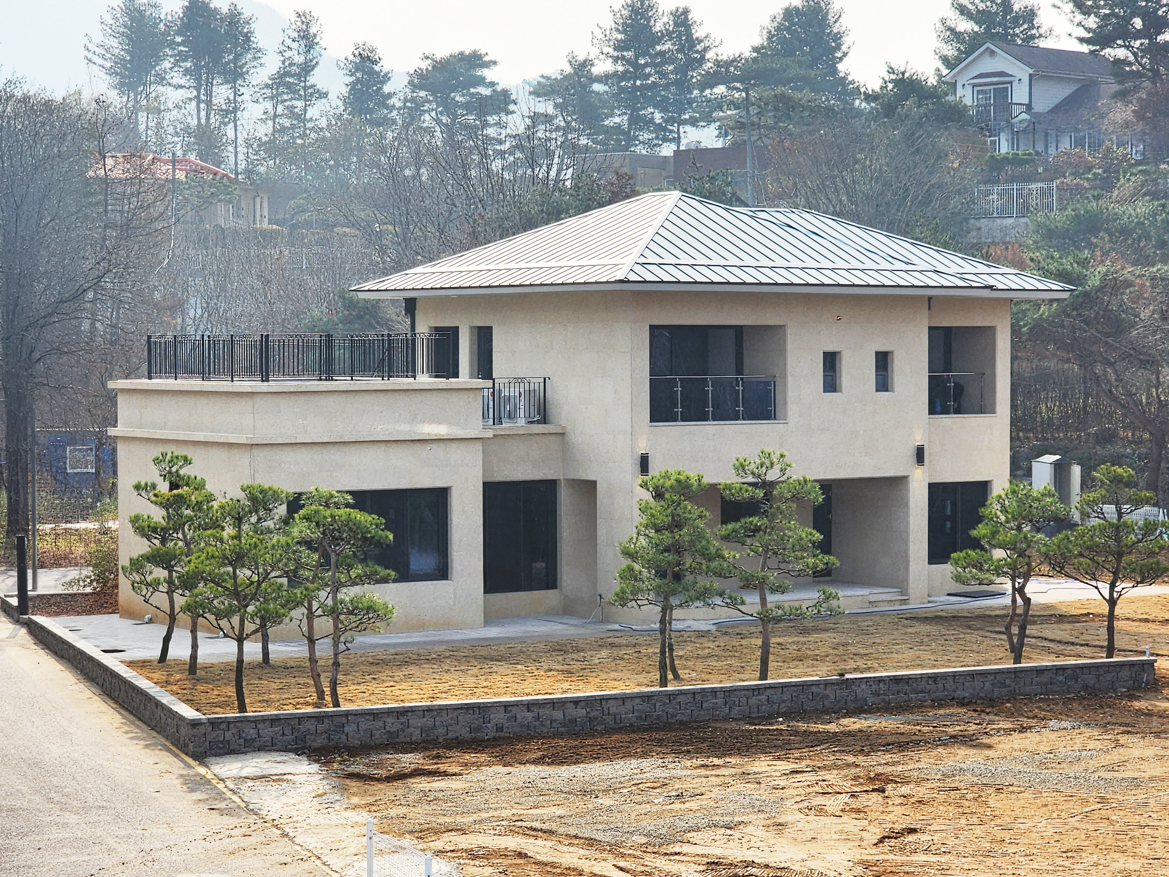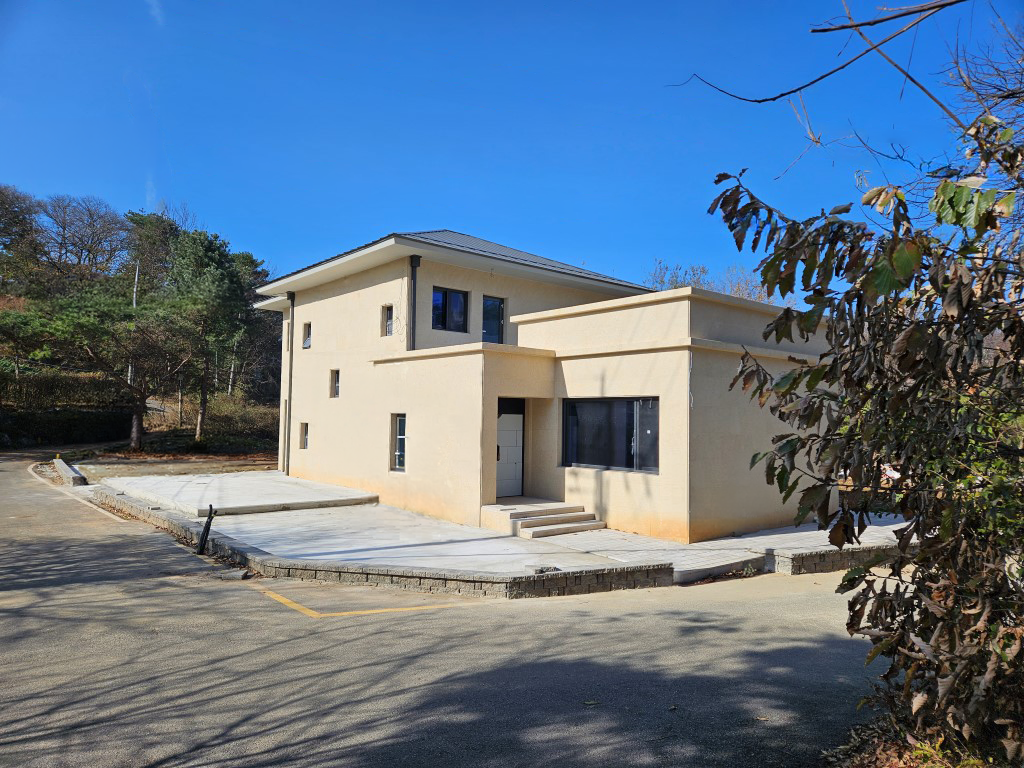 설계는 이러한 대지의 풍부한 자연경관을 적극적으로 수용하는 데에서 출발하였다. 주변 환경과의 조화를 이루는 배치, 내부와 외부 공간이 유연하게 연결되는 구성, 그리고 테라스를 통해 확장된 외부 공간은 다양한 시선으로 풍경을 경험할 수 있도록 계획되었다.건축주의 요구를 충실히 반영하기 위해 총 9차례의 계획설계 변경이 이루어졌고, 계약 이후 약 6개월 만에 모두가 공감하는 설계안이 완성되었다. 그만큼 착공 당시의 기대감 또한 매우 컸던 프로젝트였다.그러나 시공 과정에서 외장재와 패턴이 임의로 변경되고, 창호의 위치와 형태 또한 설계 의도와 다르게 수정되면서, 당초 계획했던 공간의 긴장감과 조형적 완성도는 구현되지 못했고 밋밋한 건물이 되었다. 일부 시공 현장에서 나타나는, 설계 의도를 충분히 존중하지 않은 채 이루어지는 즉흥적 판단은 결과적으로 건축의 본질적 가치를 약화시킨다. 그럼에도 불구하고 기본적인 매스 비례가 유지된 점은 그나마 다행이라 할 수 있다.이 프로젝트는 건축에서 설계 의도의 일관성과 그것을 구현하는 과정의 중요성을 다시 한 번 깊이 생각하게 한 작업으로 남았다.